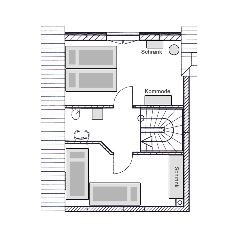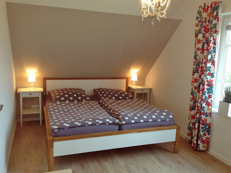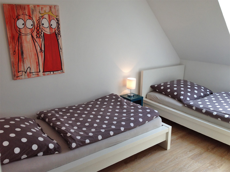 Die Schlafzimmer sind liebevoll eingerichtet und verfügen im Elternzimmer über ein komfortables, großes Doppelbett und im Kinderzimmer über zwei Einzelbetten. Auch ein Reisebett und Hochstuhl sind für unsere kleinen Gäste vorhanden.